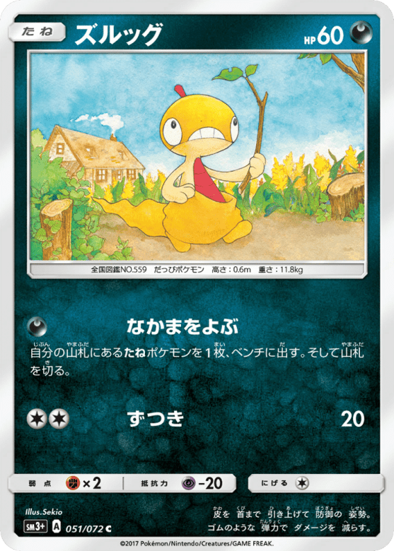 自分の山札にあるたねポケモンを1枚、ベンチに出す。そして山札を切る。