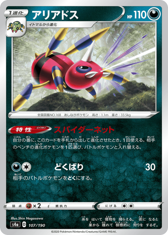 自分の番に、このカードを手札から出して進化させたとき、1回使える。相手のベンチの進化ポケモンを1匹選び、バトルポケモンと入れ替える。