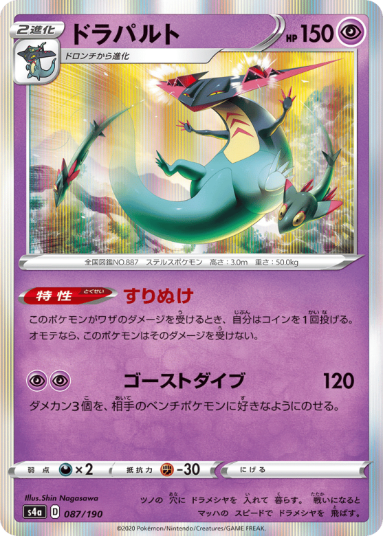 このポケモンがワザのダメージを受けるとき、自分はコインを1回投げる。オモテなら、このポケモンはそのダメージを受けない。