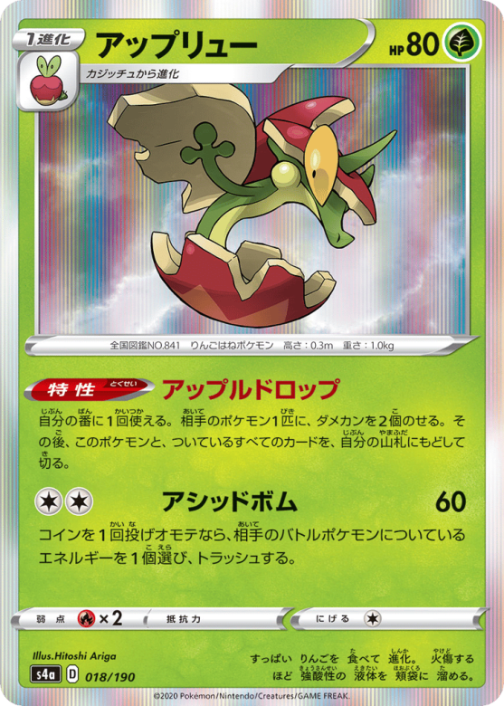 すっぱい りんごを 食べて 進化。 火傷する ほど 強酸性の 液体を 頬袋に 溜める。