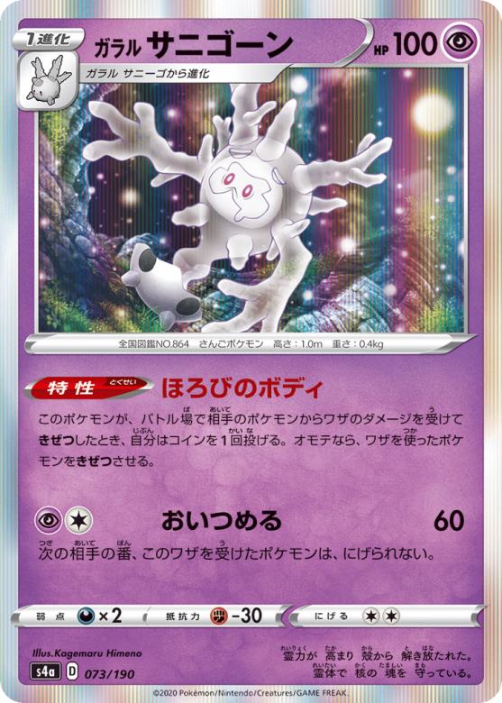 このポケモンが、バトル場で相手のポケモンからワザのダメージを受けてきぜつしたとき、自分はコインを1回投げる。オモテなら、ワザを使ったポケモンをきぜつさせる。
