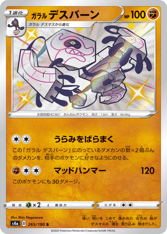 この「ガラル デスバーン」にのっているダメカンの数×2個ぶんのダメカンを、相手のポケモンに好きなようにのせる。
