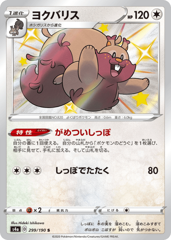 自分の番に1回使える。自分の山札から「ポケモンのどうぐ」を1枚選び、相手に見せて、手札に加える。そして山札を切る。