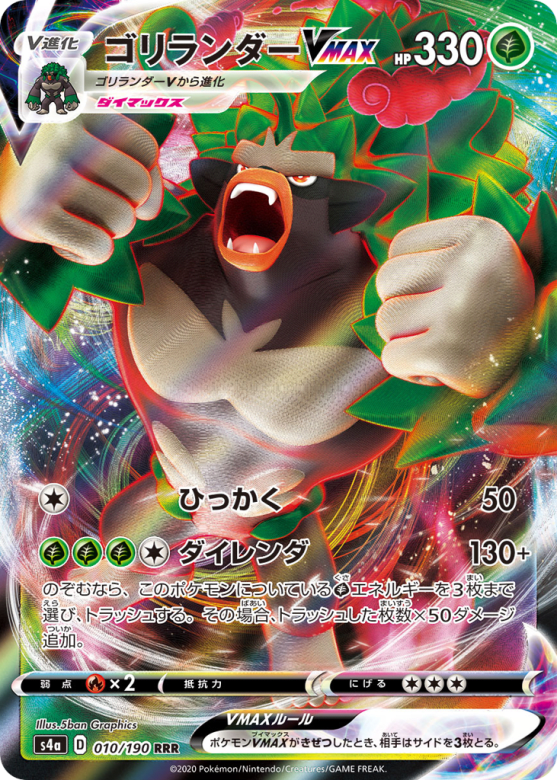 のぞむなら、このポケモンについているGrassエネルギーを3枚まで選び、トラッシュする。その場合、トラッシュした枚数×50ダメージ追加。