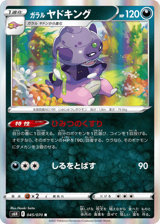 自分の番に1回使える。自分のポケモンを1匹選び、コインを1回投げる。オモテなら、そのポケモンのHPを「90」回復する。ウラなら、そのポケモンにダメカンを3個のせる。