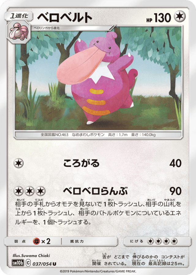 相手の手札からオモテを見ないで1枚トラッシュし、相手の山札を上から1枚トラッシュし、相手のバトルポケモンについているエネルギーを、1個トラッシュする。