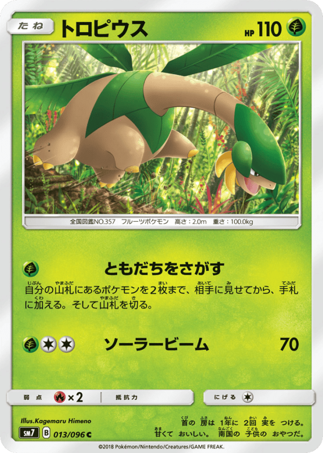 自分の山札にあるポケモンを2枚まで、相手に見せてから、手札に加える。そして山札を切る。