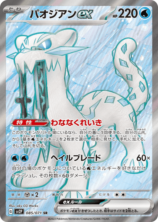 自分の場のポケモンについているWaterエネルギーを好きなだけトラッシュし、その枚数×60ダメージ。