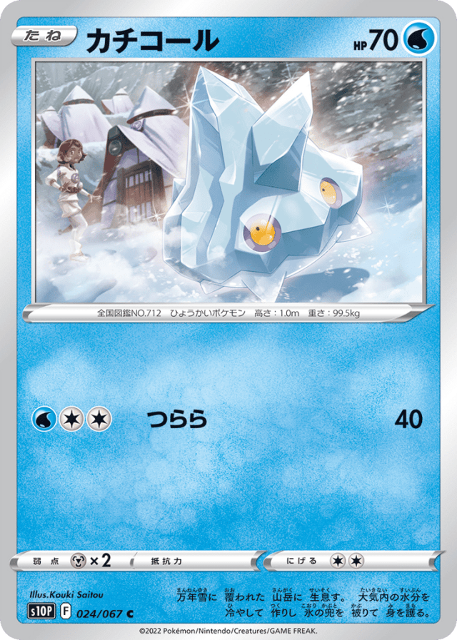 万年雪に 覆われた 山岳に 生息す。 大気内の水分を 冷やして 作りし 氷の兜を 被りて 身を護る。