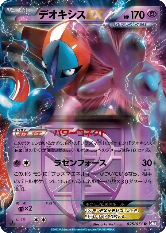このポケモンがいるかぎり、自分の「プラズマ団」のポケモン(「デオキシスEX」はのぞく)が使うワザの、バトルポケモンへのダメージは「+10」される。