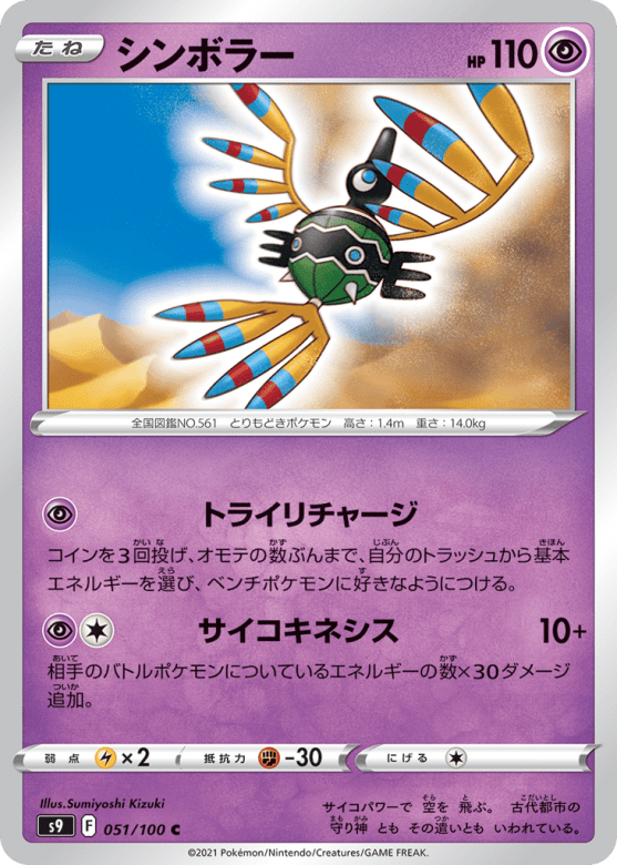 コインを3回投げ、オモテの数ぶんまで、自分のトラッシュから基本エネルギーを選び、ベンチポケモンに好きなようにつける。