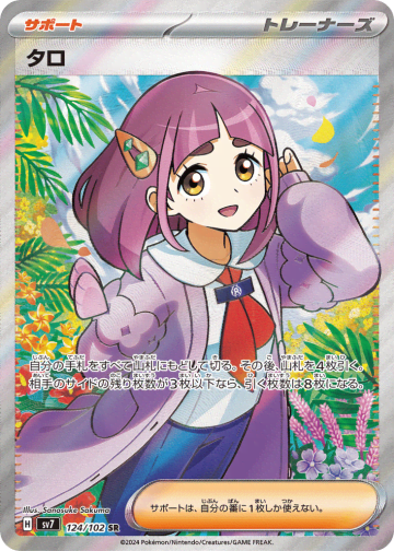 自分の山札から「基本Grassエネルギー」をそれぞれ2枚まで選び、自分のポケモンに好きなようにつける。そして山札を切る。