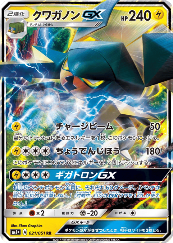 相手のベンチポケモン全員に、それぞれ60ダメージ。[ベンチは弱点・抵抗力を計算しない。][対戦中、自分はGXワザを1回しか使えない。]