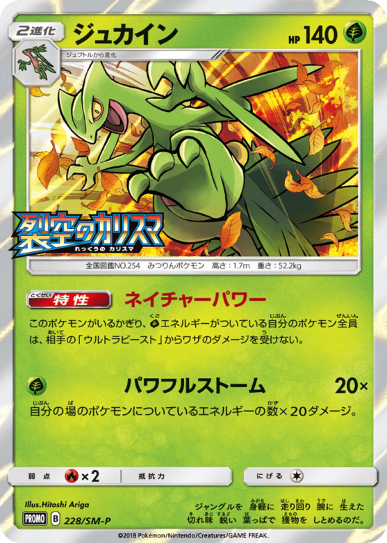 このポケモンがいるかぎり、Grassエネルギーがついている自分のポケモン全員は、相手の「ウルトラビースト」からワザのダメージを受けない。
