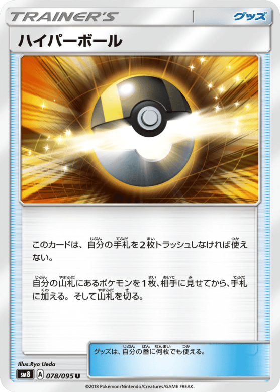 このカードは、自分の手札を2枚トラッシュしなければ使えない。 自分の山札にあるポケモンを1枚、相手に見せてから、手札に加える。そして山札を切る。 グッズは、自分の番に何枚でも使える。