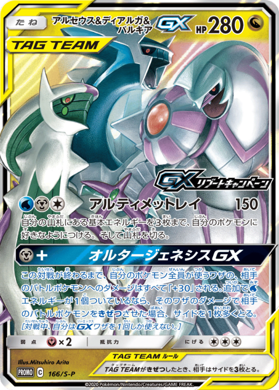 この対戦が終わるまで、自分のポケモン全員が使うワザの、相手のバトルポケモンへのダメージはすべて「 30」される。追加でWaterエネルギーが1個ついているなら、そのワザのダメージで相手のバトルポケモンをきぜつさせた場合、サイドを1枚多くとる。[対戦中、自分はGXワザを1回しか使えない。]