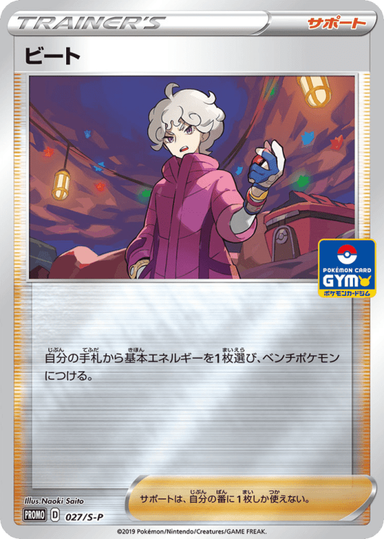 自分の手札から基本エネルギーを1枚選び、ベンチポケモンにつける。 サポートは、自分の番に1枚しか使えない。