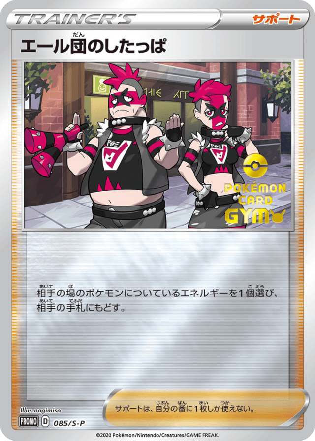 相手の場のポケモンについているエネルギーを1個選び、相手の手札にもどす。 サポートは、自分の番に1枚しか使えない。