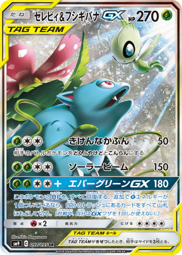 このポケモンのHPを、すべて回復する。追加でGrassエネルギーが1個ついているなら、自分のトラッシュにあるカードをすべて山札にもどして切る。[対戦中、自分はGXワザを1回しか使えない。]