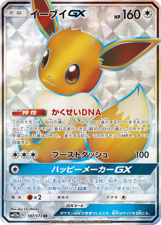 このポケモンは、自分の番に、「イーブイ」から進化するカードを手札から出して、このポケモンに重ねて進化できる(最初の自分の番と、このポケモンを場に出した番はのぞく)。進化する前に、このポケモンのHPを、すべて回復する。