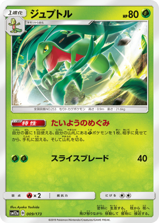 自分の番に1回使える。自分の山札にあるGrassポケモンを1枚、相手に見せてから、手札に加える。そして山札を切る。