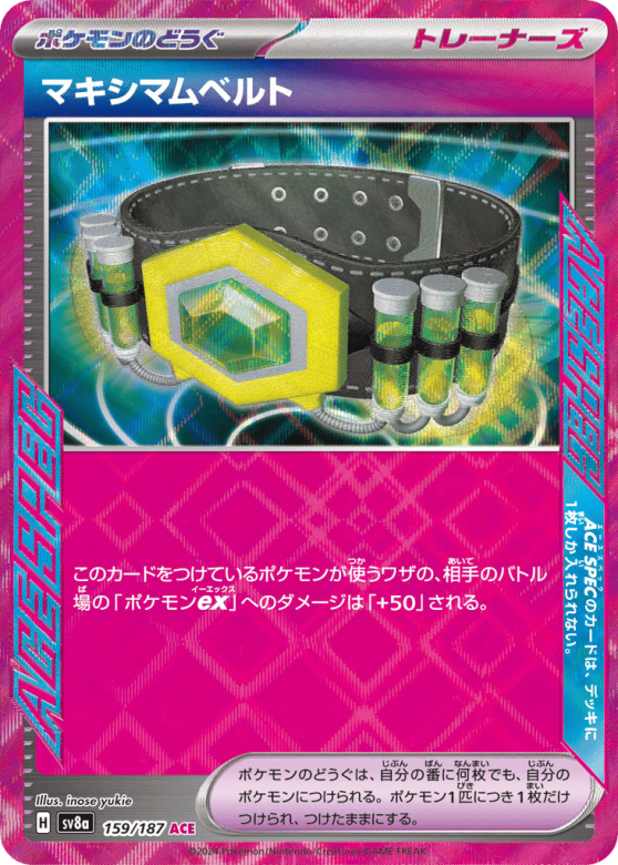 このカードをつけているポケモンが使うワザの、相手のバトル場の「ポケモンex」へのダメージは「+50」される。