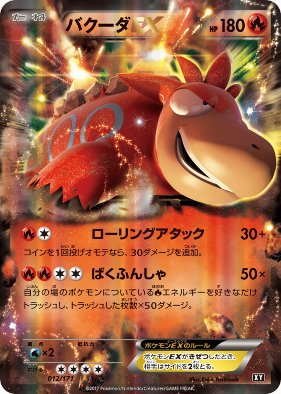 自分の場のポケモンについているFireエネルギーを好きなだけトラッシュし、トラッシュした枚数×50ダメージ。