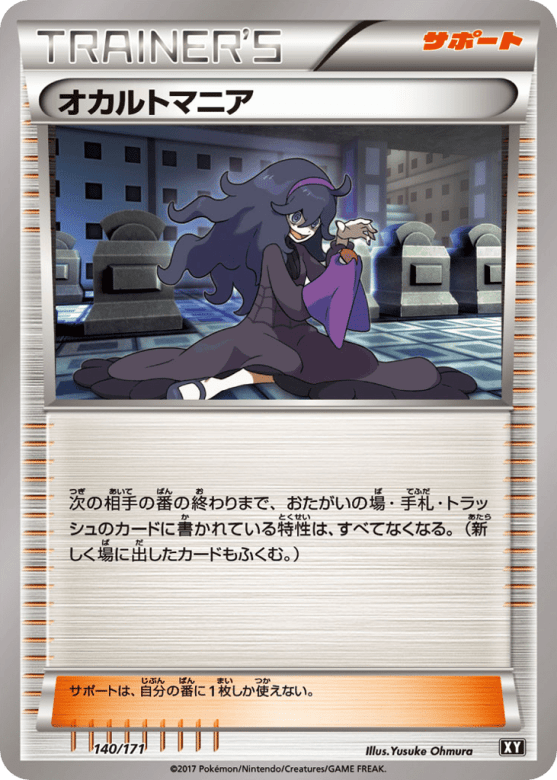 次の相手の番の終わりまで、おたがいの場・手札・トラッシュのカードに書かれている特性は、すべてなくなる。(新しく場に出したカードもふくむ。) サポートは、自分の番に1枚しか使えない。
