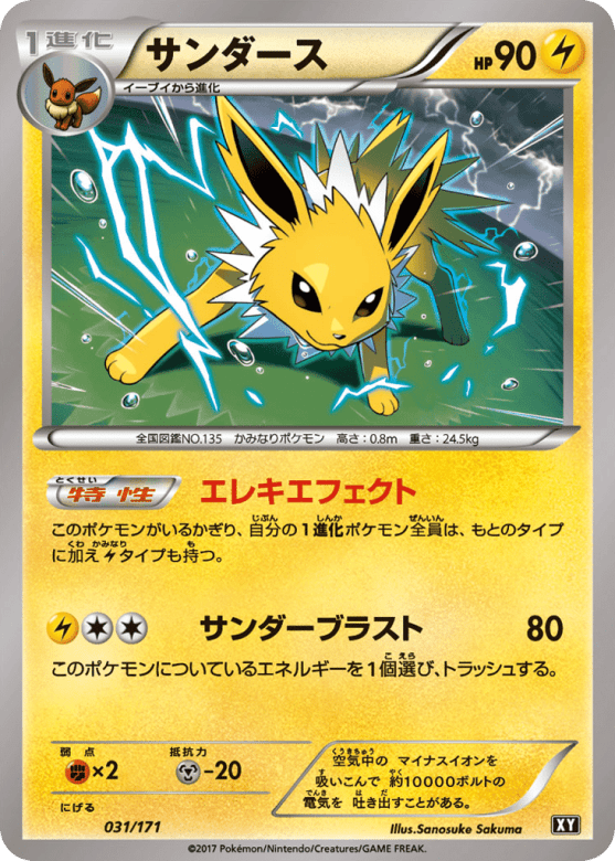 このポケモンがいるかぎり、自分の1進化ポケモン全員は、もとのタイプに加えElectricタイプも持つ。