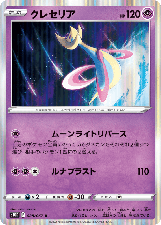 クレセリアの 羽を 持って 寝ると 楽しい 夢が 見られると いう。 三日月の化身と 呼ばれている。