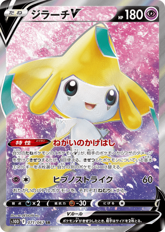 自分のたねポケモンの「ポケモンV」が、相手のポケモンからワザのダメージを受けてきぜつするたび、1回使える。きぜつしたポケモンについている基本エネルギーを1枚選び、自分の別のポケモンにつけ替える。