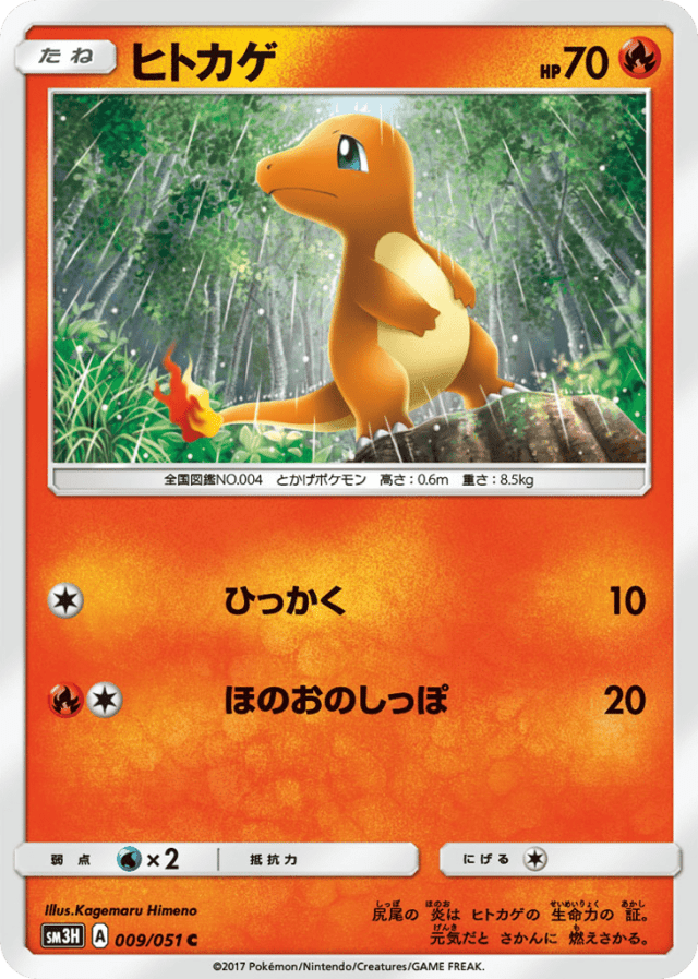 尻尾の 炎は ヒトカゲの 生命力の 証。 元気だと さかんに 燃えさかる。