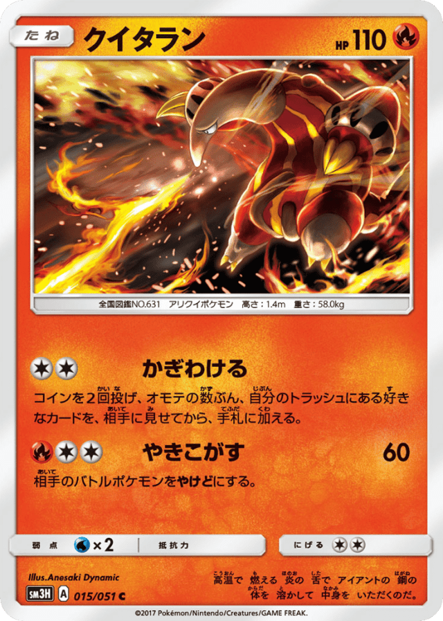 高温で 燃える 炎の 舌で アイアントの 鋼の 体を 溶かして 中身を いただくのだ。
