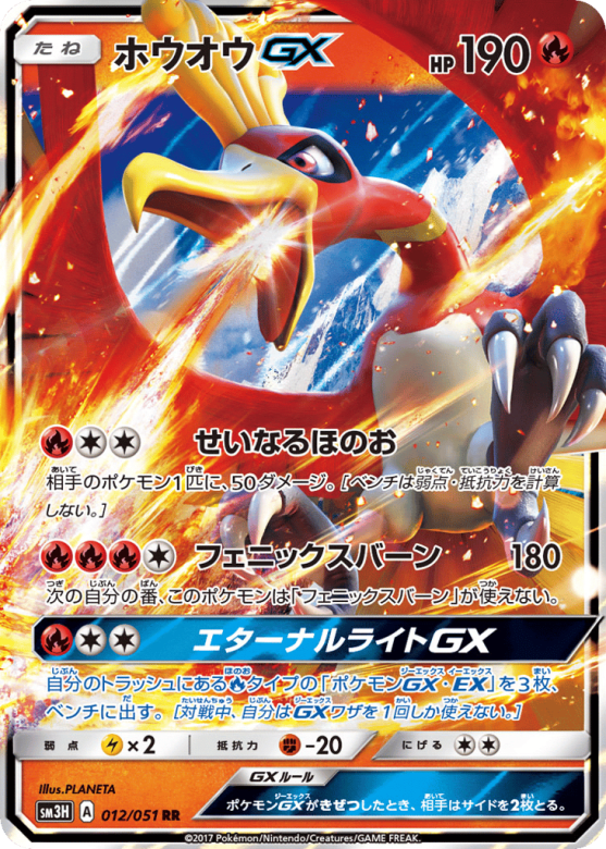 自分のトラッシュにあるFireタイプの「ポケモンGX・EX」を3枚、ベンチに出す。[対戦中、自分はGXワザを1回しか使えない。]