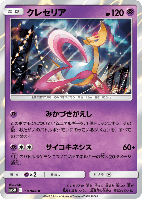 クレセリアの 羽を 持って 寝ると 楽しい 夢が 見られると いう。 三日月の化身と 呼ばれている。