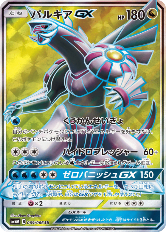 相手の場のポケモンについているエネルギーを、すべて山札にもどして切る。[対戦中、自分はGXワザを1回しか使えない。]