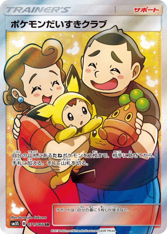 自分の山札にあるたねポケモンを2枚まで、相手に見せてから、手札に加える。そして山札を切る。 サポートは、自分の番に1枚しか使えない。