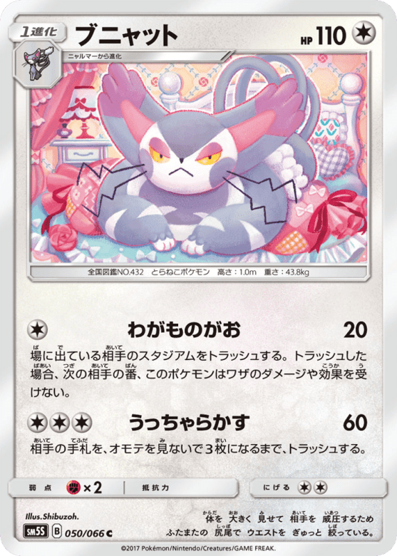 場に出ている相手のスタジアムをトラッシュする。トラッシュした場合、次の相手の番、このポケモンはワザのダメージや効果を受けない。
