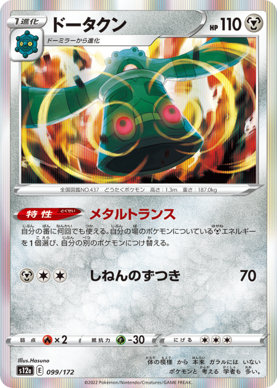 自分の番に何回でも使える。自分の場のポケモンについているMetalエネルギーを1個選び、自分の別のポケモンにつけ替える。