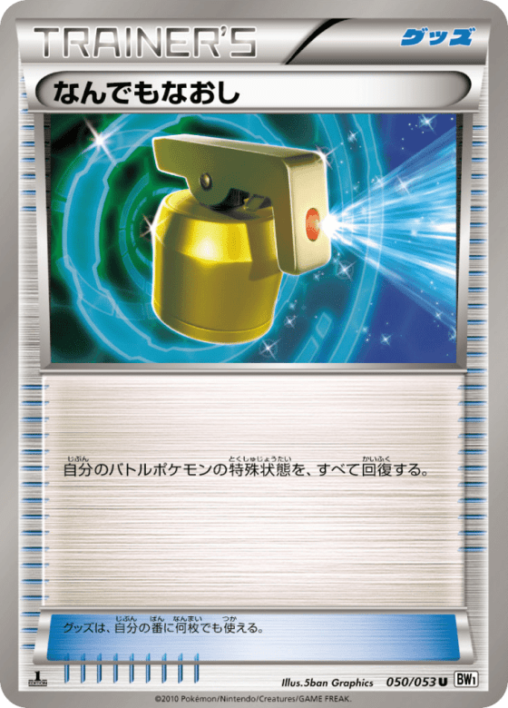 自分のバトルポケモンの特殊状態を、すべて回復する。 グッズは、自分の番に何枚でも使える。