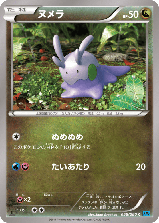 一番 弱い ドラゴンポケモン。 ヌメヌメの 体が 乾かないよう ジメジメした 日陰で 暮らす。