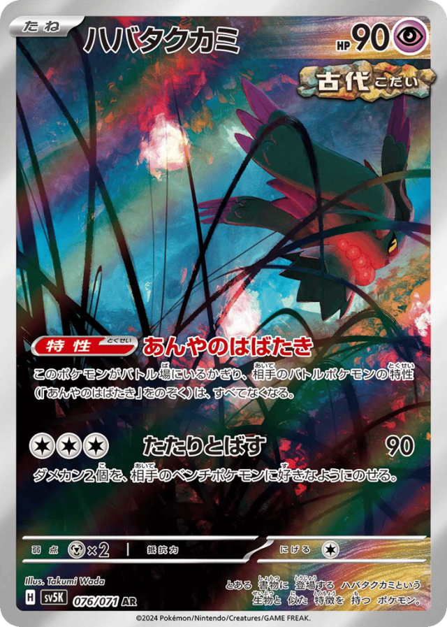 とある 書物に 登場する ハバタクカミという 生物と 似た 特徴を 持つ ポケモン。