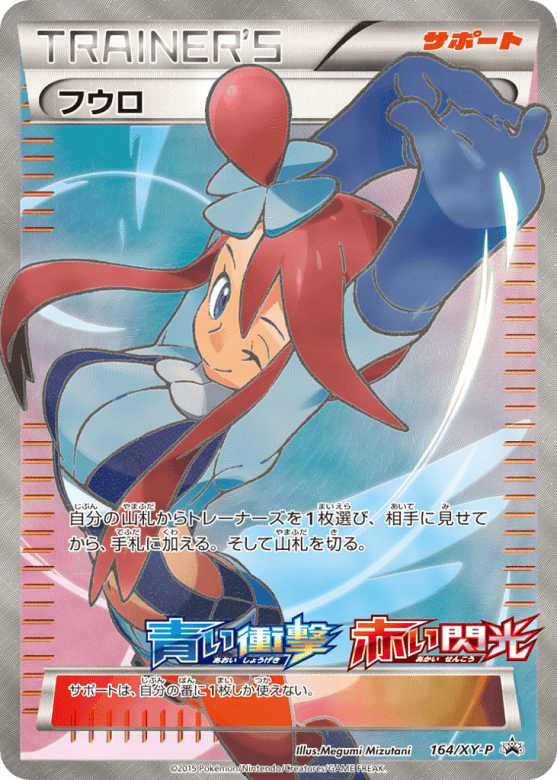 自分の山札からトレーナーズを1枚選び、相手に見せてから、手札に加える。そして山札を切る。 サポートは、自分の番に1枚しか使えない。