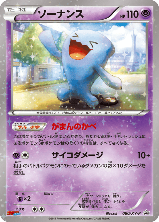 このポケモンがバトル場にいるかぎり、おたがいの場・手札・トラッシュにあるポケモン(Psychicポケモンはのぞく)の特性は、すべてなくなる。