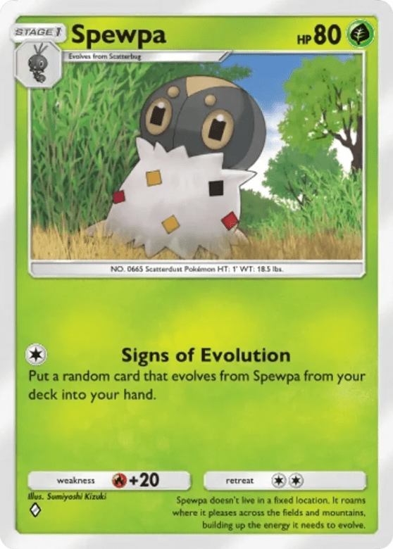 Put a random card that evolves from Spewpa from your deck into your hand.