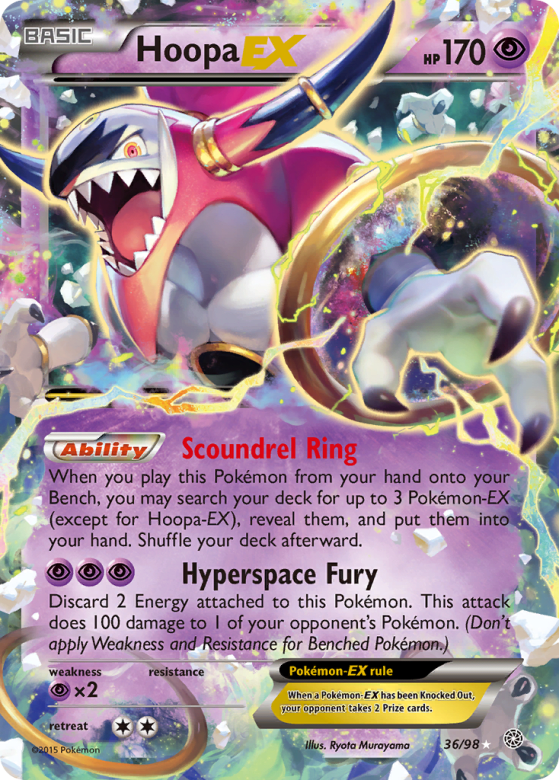 When you play this Pokémon from your hand onto your Bench, you may search your deck for up to 3 Pokémon-EX (except for Hoopa-EX), reveal them, and put them into your hand. Shuffle your deck afterward.