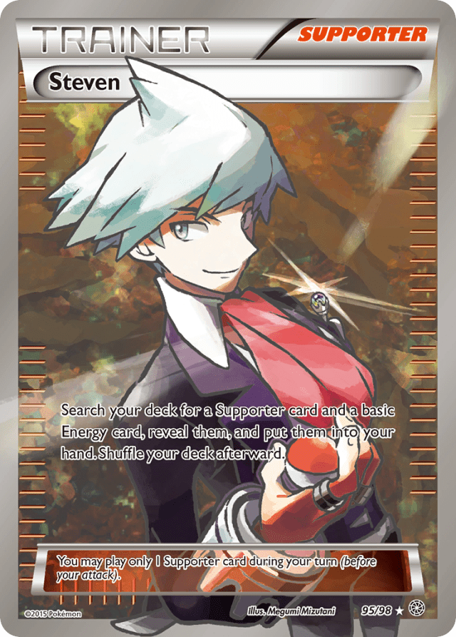 Search your deck for a Supporter card and a basic Energy card, reveal them, and put them into your hand. Shuffle your deck afterward. You may play only 1 Supporter card during your turn (before your attack).