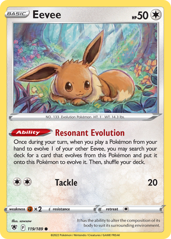 Once during your turn, when you play a Pokémon from your hand to evolve 1 of your other Eevee, you may search your deck for a card that evolves from this Pokémon and put it onto this Pokémon to evolve it. Then, shuffle your deck.