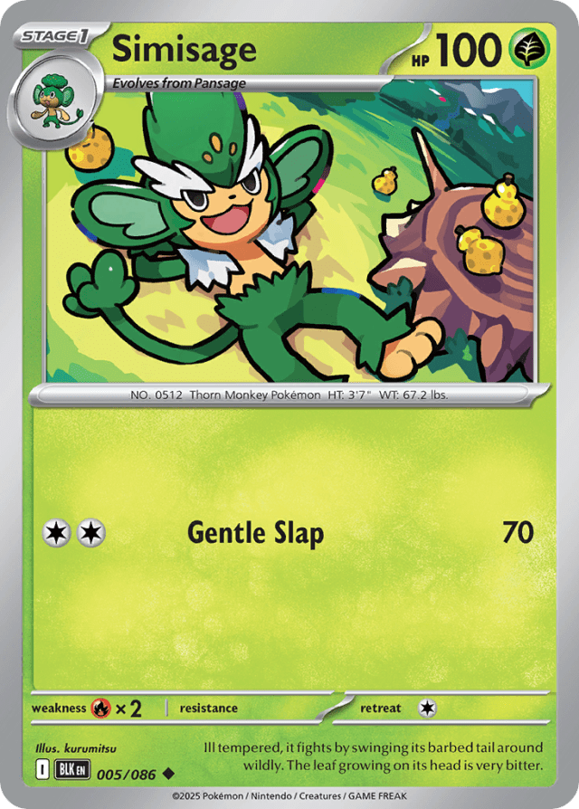 Ill tempered, it fights by swinging its barbed tail around wildly. The leaf growing on its head is very bitter.