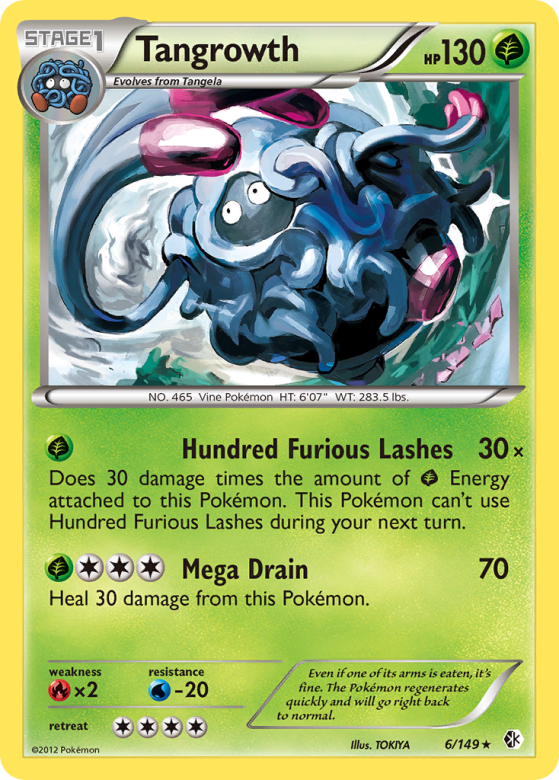 Does 30 damage times the amount of Grass Energy attached to this Pokémon. This Pokémon can't use Hundred Furious Lashes during your next turn.